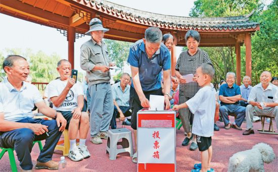 基層監督是黨和國家監督體系的重要組成部分,是確保基層權力正確運行的重要保障。圖為2025年7月19日,江蘇省宿遷市泗洪縣上塘鎮墊湖村村民代表對鎮、村干部工作作風和實績進行評議。 人民圖片 許昌亮/攝
